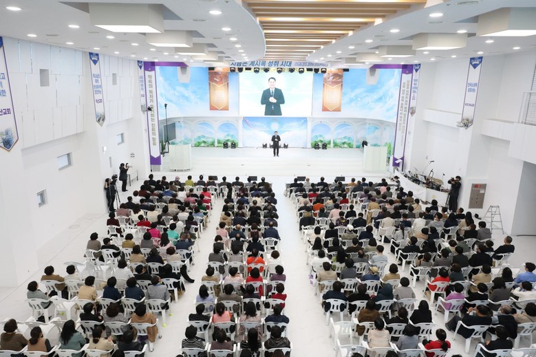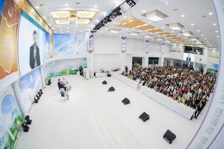 지난 16일 신천지 전주교회에서 열린 ‘가을 콘서트’ 행사에서 많은 시민이 강연을 듣고 있는 모습.