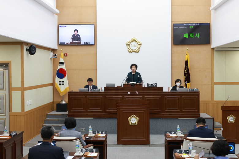 이해양 의장은 폐회사를 통해 “제ㆍ개정되는 조례와 공유재산관리계획은 군민 생활과 밀접히 연관돼 군정의 치밀한 행정력을 강조하는 만큼 면밀히 살펴 이행해달라”고 말하고 제12회 무주산골영화제의 성공적 운영을 위해 최선을 다해줄 것을 당부했다.
