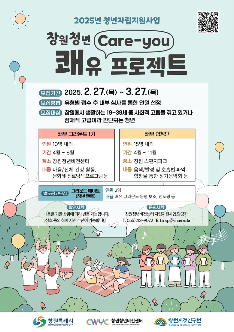 ‘쾌유 합창단’은 음악을 통한 정서적 치유 및 소통 프로그램으로, 4월부터 6월까지 매주 목요일 저녁 7시부터 9시까지 창원 스펀지파크에서 진행된다. 하반기에는 7월부터 11월까지 월별 정기 모임 및 음악회를 운영하여 청년들이 음악을 통해 교류하고, 새로운 관계를 형성할 수 있도록 지원할 계획이다.
