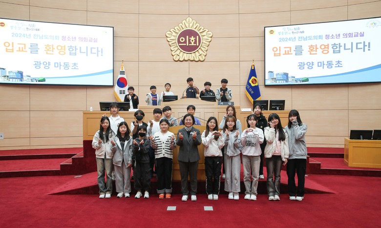 [전남 세계타임즈=우덕현 기자] 전라남도의회 경제관광문화위원회 부위원장 박경미 의원(더불어민주당, 광양4)은 11월 13일 도의회 본회의장에서 열린 ‘청소년 의회교실’에 참여한 마동초등학교 학생들을 맞이하며 민주시민으로 성장할 수 있도록 격려했다.