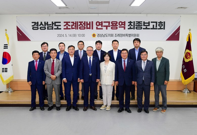 [경남 세계타임즈=최성룡 기자] 경상남도의회 조례정비특별위원회(위원장 정규헌, 이하 특위)는 14일 대회의실에서 ‘경상남도 조례정비 연구용역’ 최종보고회를 개최하였다.