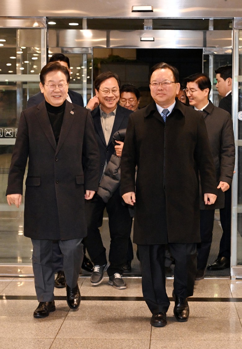 [세계타임즈 = 심귀영 기자] 더불어민주당 이재명 대표가 24일 서울 여의도에서 김부겸 전 국무총리를 만나 만찬장소로 향하고 있다. 2025.2.24 [국회사진기자단]
