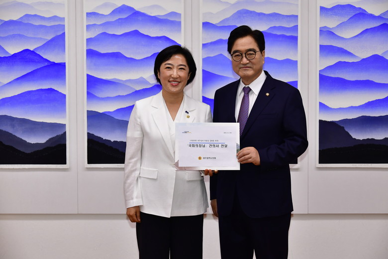[광주 세계타임즈=손권일 기자] 광주광역시의회(의장 신수정)는 지난 2일, 서울 여의도 국회에서 열린 ‘국회, 광주의 날’ 행사에서 우원식 국회의장을 예방하고 자치분권 강화를 위한 지방의회법의 신속한 제정을 촉구하는 건의서를 전달했다.
