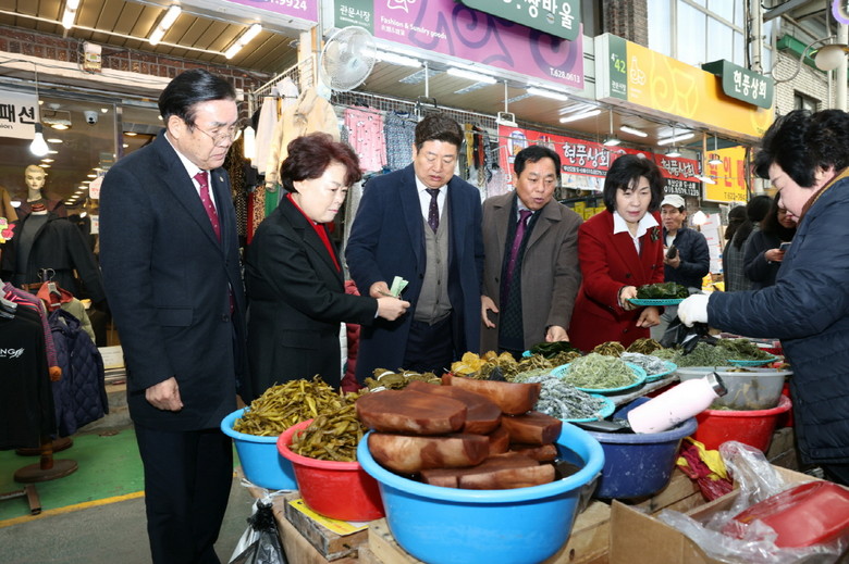 중소벤처기업부 문화관광형 특성화시장으로 선정된 관문시장을 찾은 위원들은 그간 추진한 사업 현장을 확인하고 점검하는 시간을 가졌으며, 장기적인 경기 침체로 어려움을 겪고 있는 전통시장 상인들의 목소리를 직접 청취하며 민생경제 활성화를 위한 방안을 모색했다.