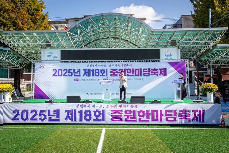[성남시 세계타임즈=송민수 기자] 성남시의회(부의장 안광림을 비롯한 의원들)는 11월 1일 성남종합운동장 보조경기장에서 열린‘2025년 제18회 중원한마당축제’에 참석했다. 이번 축제는 중원한마당축제 추진위원회가 주최·주관하고 성남시 중원구가 후원했으며, ‘함께 웃고 즐기는 주민화합 축제’라는 취지 아래 지역 주민들이 하나 되는 소통과 화합의 장으로 마련됐다.