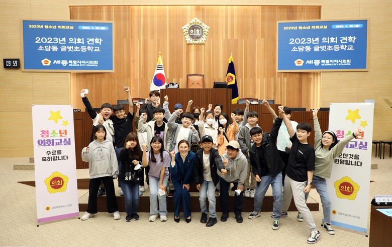 한편 글벗초등학교를 마지막으로 세종특별자시의회는 2023년 청소년의회교실 견학 프로그램을 마무리했다. 이번 청소년의회교실은 4월 17일부터 28일까지 진행됐으며 총 6개 학교(미르초ㆍ보람초ㆍ감성초ㆍ솔빛초ㆍ전동초ㆍ글벗초) 13개 학급 292명 학생이 프로그램에 참여하여 의회를 알아가고 민주주의를 간접적으로 체험해 보는 시간을 가졌다.