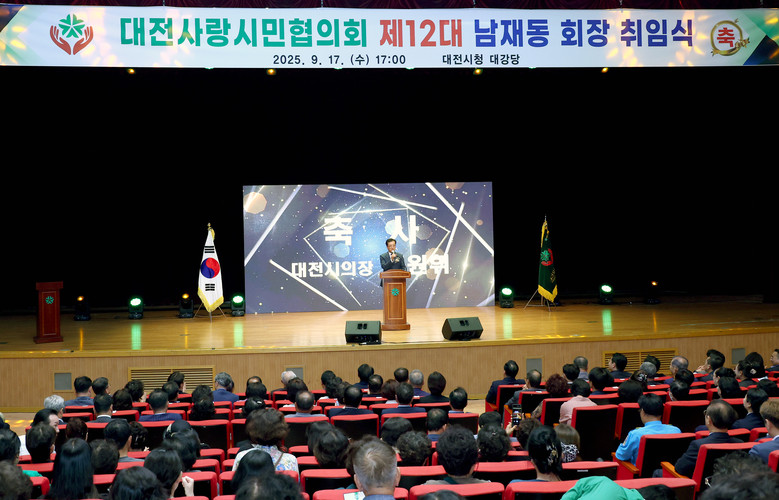 [대전 세계타임즈=이채봉 기자] 대전시의회 조원휘 의장은 17일 대전시청에서 개최된 대전사랑시민협의회 제12대 남재동 회장 취임식에 참석해 신임 회장의 취임을 축하하며, 시민의 행복과 일류 경제도시 대전을 위한 힘찬 출발을 응원했다.