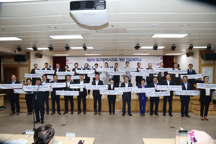 [대구=세계타임즈 이의수 기자] 제8대 대구광역시의회의 출범을 알리고, 소통하는 민생의회로 자리매김하기 위한 ‘제8대 대구광역시의회 개원 기념 세미나’가 4일(화) 오후 2시 대구시청 본관 10층 대회의실에서 열렸다.