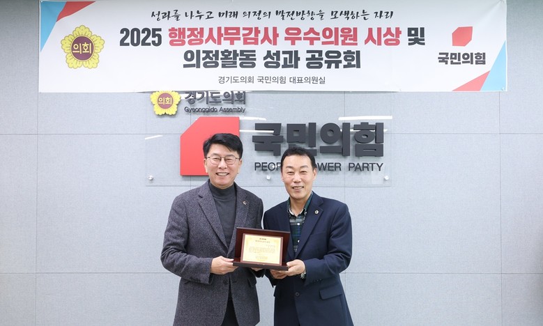 [경기도 세계타임즈=송민수 기자] 경기도의회 안전행정위원회 윤성근 부위원장(국민의힘, 평택4)은 12월 12일 국민의힘 회의실에서 열린 ‘2025년 행정사무감사 우수의원’ 시상식에서 소방재난본부와 인권담당관 등을 대상으로 한 책임 있는 질의와 정책 대안 제시 공로를 인정받아 우수의원으로 선정됐다.