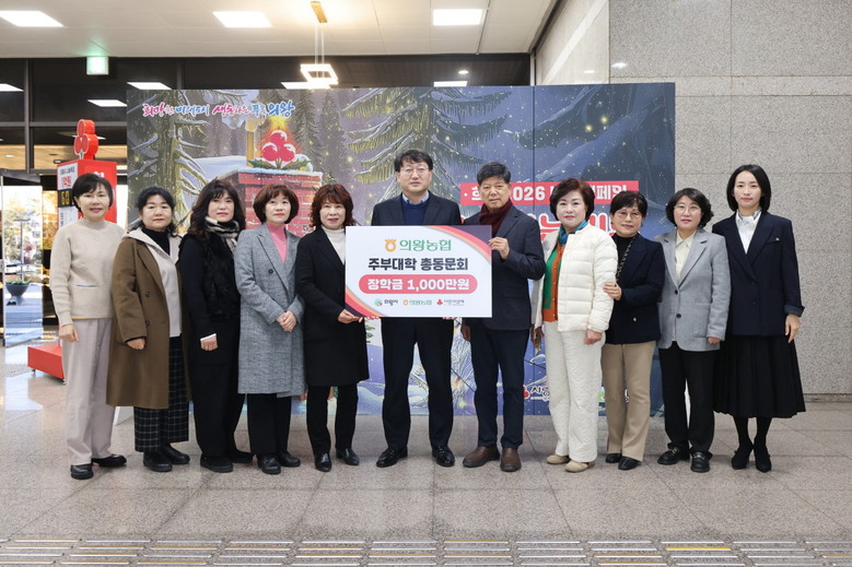[의왕시 세계타임즈=송민수 기자] 의왕시는 12월 18일 ‘의왕농협주부대학 총동문회(총회장 김경자)가 지역 인재 육성을 위해 장학금 1,000만원을 기부했다고 밝혔다.