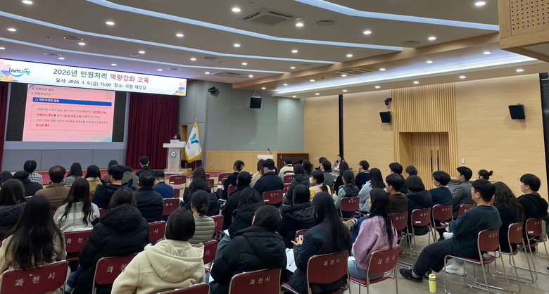 [과천시 세계타임즈=송민수 기자] 과천시는 지난 9일 시청 대강당에서 신규 직원과 민원 처리 담당자 등 직원 80여 명을 대상으로 ‘민원 처리 역량 강화 교육’을 실시했다.