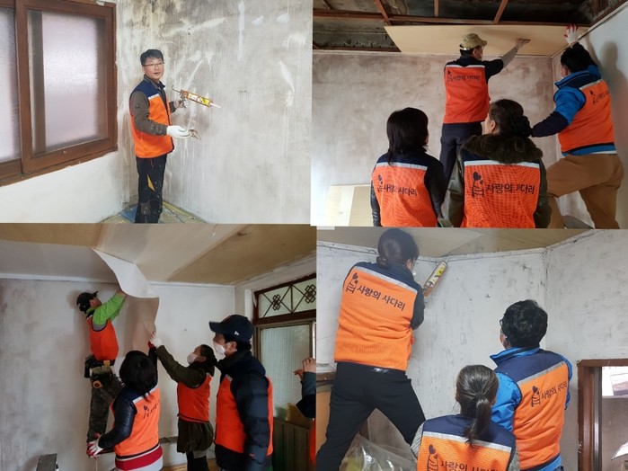 김준민, 김태우, 방치석, 천정훈 등 각 분야의 전문가 회원들이 중심이 되어서 자원봉사자 20명과 함께 3일 동안에 집수리 봉사를 마무리 하였다.