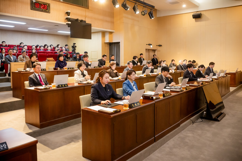 조성대 의장은 개회사를 통해 “이번 정례회는 행정사무감사와 2026년도 본예산을 심사하면서 한 해의 의정활동을 마무리하고 새해를 준비하는 중요한 회기”라며, “의원 여러분들은 면밀한 검토와 심사에 최선을 다해 주시고, 공직자 여러분께서는 충실한 자료 제공과 성실한 답변으로 시민들의 요구가 시정 곳곳에 반영될 수 있도록 노력해달라”고 주문했다.