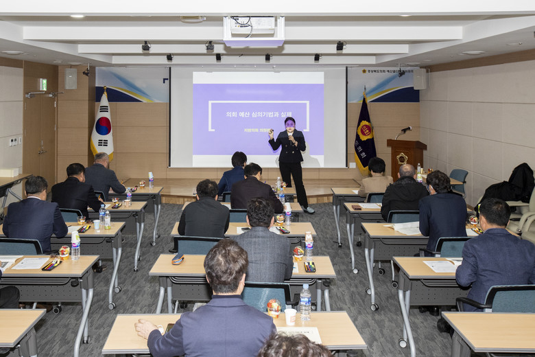 예산분야 전문가인 한국지방정치연구소 우지영 소장을 초빙하여 ‘예산 심의 기법과 실제’란 주제로 예산편성기준, 재정현안, 지방자치단체 간 재정비교, 중점 체크사항 등 예산 심사에 꼭 필요한 내용과 심사 방법 등을 교육했다.