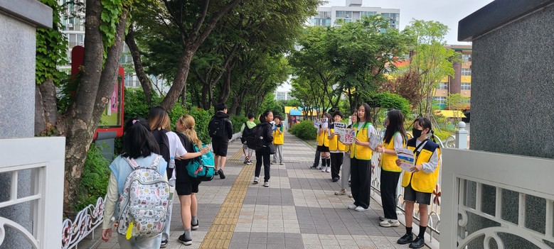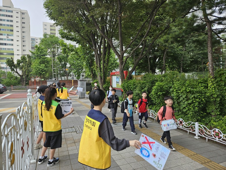 [광명시 세계타임즈=송민수 기자] 하안남초등학교(교장 방윤) 학생자치회 학생들은 5월 20일부터 22일까지 3일간, 아침 8시 25분부터 8시 50분까지 등교시간에 맞추어 교문 앞에서 안전한 등교방법 및 통학로에 대하여 캠페인을 실시하였다.