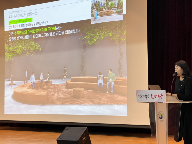 이날 자리에서는 둔산동 법원 일원의 △유동 인구 밀집 △교통 혼잡 △보행자 행태 등 분석 결과를 바탕으로, 지역 맞춤형 계획안에 대한 설명이 진행됐다. 차량과 보행자 간 충돌 위험을 획기적으로 낮추면서, 도심 미관을 살리는 공공디자인을 접목했다는 내용이다.