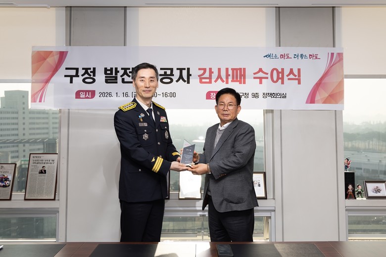 [마포구 세계타임즈=이장성 기자] 마포구(구청장 박강수)는 1월 16일 오후 3시 30분, 마포구청에서 ‘구정 발전 유공자 감사패 수여식’을 열고 지역 안전과 통합방위 체계 확립에 기여한 유공자에게 감사의 뜻을 전했다.