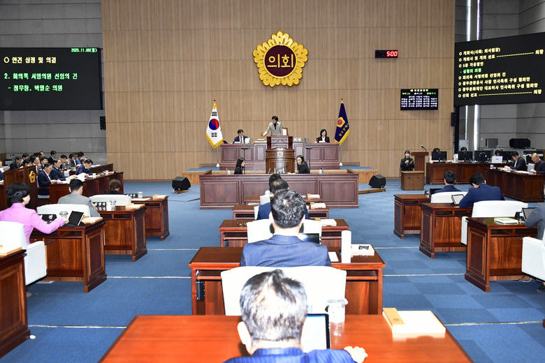 이번 정례회에서는 2025년도 행정사무감사 실시, 2025년도 추가경정예산안과 2026년 세입·세출예산안을 심사하고 조례안 32건, 동의안 7건, 보고안 10건을 포함 총 49건의 안건을 처리할 예정이다.