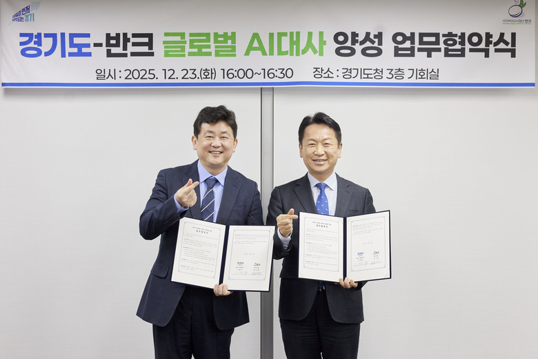 경기도는 23일 경기도청에서 반크와 이런 내용을 담은 ‘글로벌 AI대사’ 양성을 위한 업무협약을 체결하고, 생성형 인공지능(AI) 오류 대응을 위한 민관 협력체계를 구축했다. 협약식에는 고영인 경기도 경제부지사와 박기태 반크 단장을 비롯해 양 기관 관계자 10여 명이 참석했다.