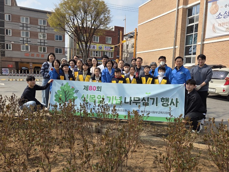 동부교육지원청은 이명숙 교육장, 강택구 광주효동초 교장 등 50여 명이 광주효동초에서 철쭉나무를 심었으며, 서부교육지원청은 이성철 교육장 등 20여 명이 유덕중학교에서 아기동백, 연상홍, 피라칸사스 등으로 화단을 새단장했다.