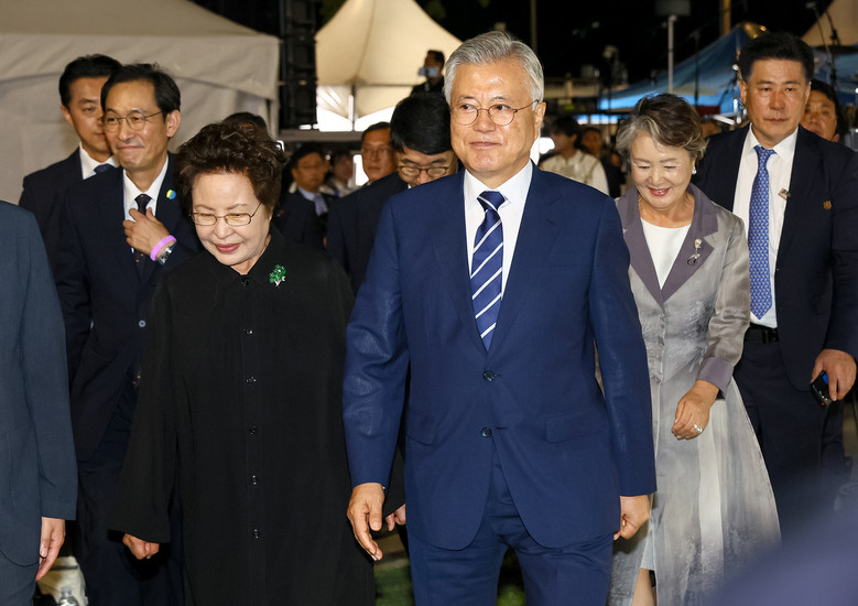 [세계타임즈 = 진정화 기자] 문재인 전 대통령과 노무현 전 대통령 부인 권양숙 여사가 15일 서울 세종대로 광화문광장에서 열린 제21대 대통령 국민임명식 '광복 80년, 국민주권으로 미래를 세우다' 행사에 참석하고 있다. 2025.8.15