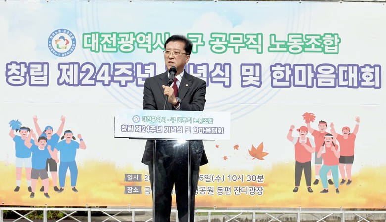 [대전 세계타임즈=이채봉 기자] 대전시의회 조원휘 의장은 16일 금강 로하스 대청공원에서 개최된 ‘대전광역시·구 공무직 노동조합 24주년 창립기념식 및 한마음대회’에 참석해 “국내를 넘어 세계로 발돋움하는 대전을 위해 함께 열심히 달려온 공무직분들의 노고에 감사드린다”며, “행사를 즐기며 재충전의 시간 보내시길 바란다”고 말했다.