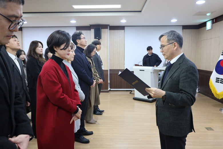 이번 임용장 교부식은 새롭게 가족이 된 직원들을 환영하고, 공직자로서의 사명감과 책임감을 되새기기 위해 마련됐다. 이날 행사에는 각 부서 과장을 비롯한 간부진이 참석해 새롭게 합류한 직원들을 따뜻하게 맞이하며 축하와 환영의 뜻을 전했다.