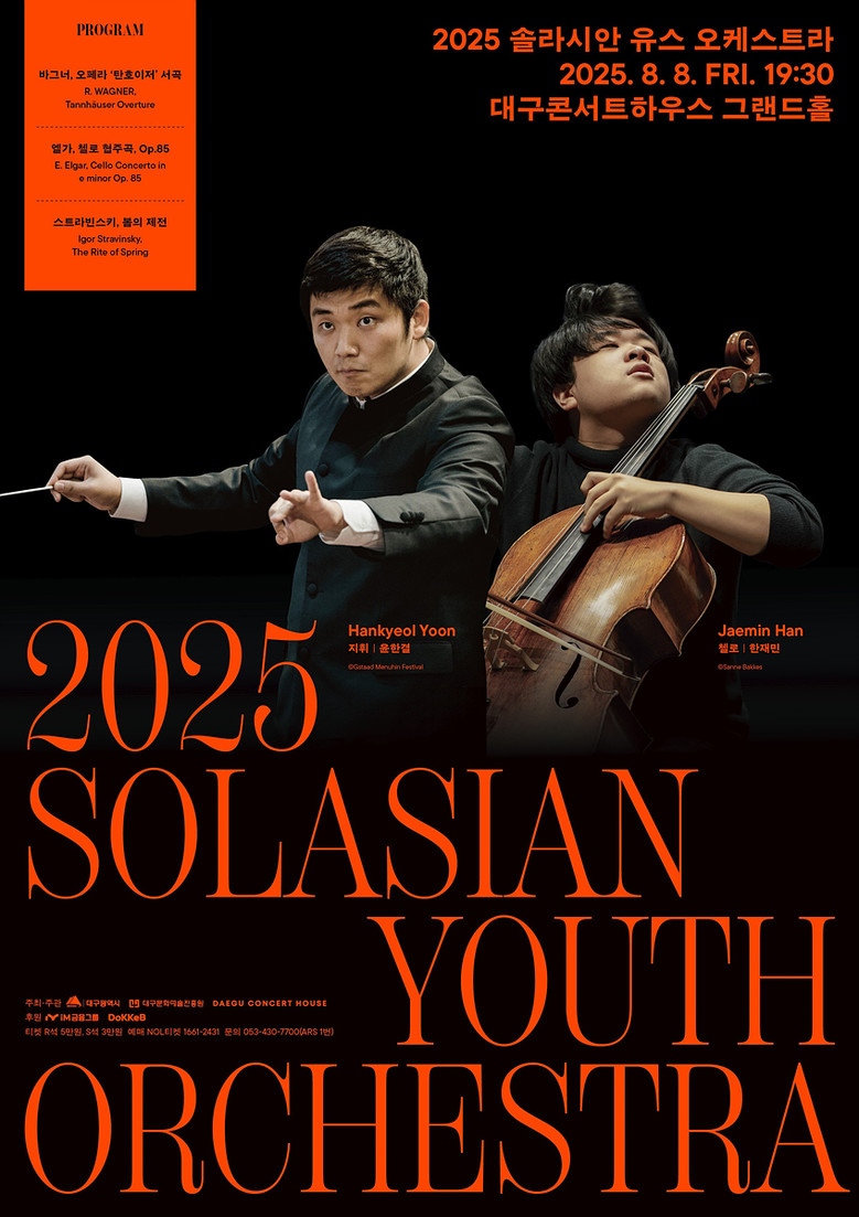 공연 프로그램은 바그너의 ‘탄호이저’ 서곡과 엘가 첼로 협주곡, 그리고 스트라빈스키의 ‘봄의 제전’으로 구성된다. 특히 ‘봄의 제전’은 복잡한 리듬과 강렬한 에너지, 고도의 앙상블 집중력을 요구하는 작품으로, 이번 무대가 솔라시안 유스 오케스트라 단원들에게는 한 단계 도약하는 기회가 될 것으로 기대된다.
