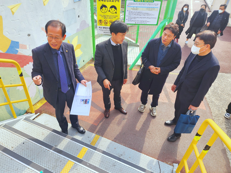 교육청 관계자는 “학교 후문 쪽의 철제계단 철거 후 데크 경사로를 설치하는 방안을 검토하고 있으며, 물고임 방지를 위해 배수로 정비도 함께 추진할 것을 고려하고 있다”고 답변했다.