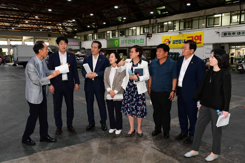[광주 세계타임즈=손권일 기자] 광주시의회 산업건설위원회(위원장 김나윤)는 5일 현장방문을 통한 애로사항 확인 및 의견 청취 등을 위해 서부·각화 농수산물도매시장을 방문했다.