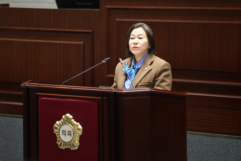 ▲ 김은하 의원은 ‘노인복지문화 지원에 관한 조례 일부개정조례안’이 지난 회기 상임위원회에서 부결됐음에도 충분한 검토 없이 재상정된 점과, 조례 근거 없이 관련 예산 27억원이 선편성된 것을 두고 “의회의 심의·의결권을 침해하는 위법 행위”라며 시정을 촉구했다.