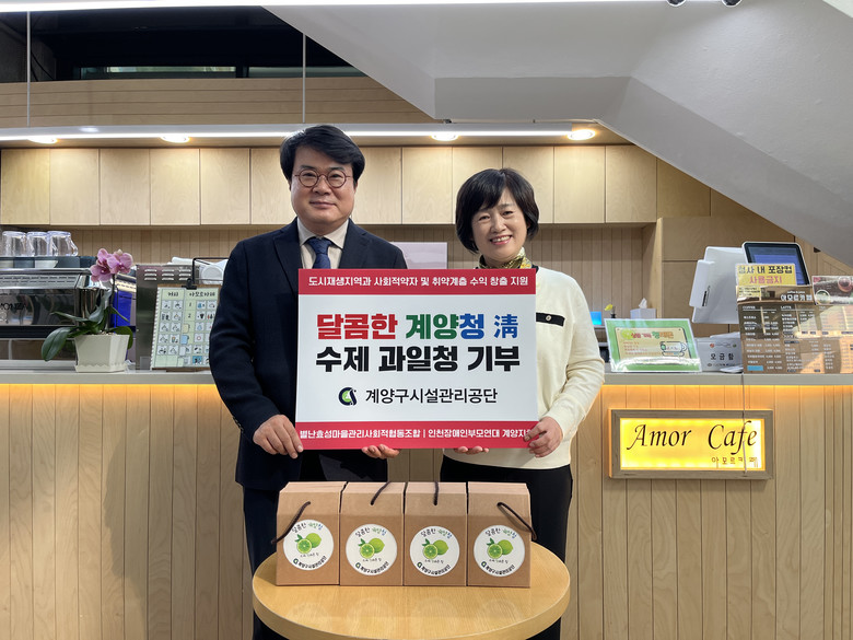 [계양구 세계타임즈=심하린 기자] 인천광역시계양구시설관리공단(이사장 박성민)은 지역 내 비영리단체의 자립 기반 강화와 사회적 약자 지원을 위해 ‘달콤한 계양청(淸)’ 기부 행사를 추진했다.