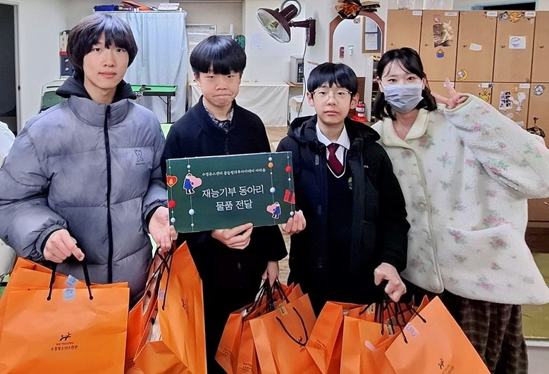 | ▲수정유스센터 방과후아카데미 재능기부 동아리 물품 전달.(사진=성남시청소년청년재단) |