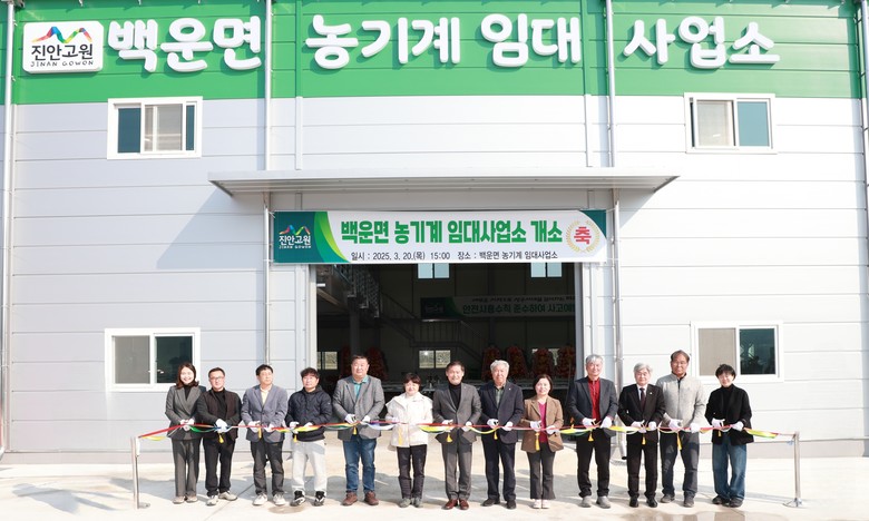 개소식에서 전춘성 진안군수는 “백운면 농기계 임대사업소 신축을 통해 지역 농업인들이 더 나은 환경에서 농사를 지을 수 있길 바란다”며 “앞으로도 농업인들의 요구를 반영한 지원 정책을 지속적으로 추진하면서 농업하기 좋은 지역으로 자리매김하겠다”고 전했다.
