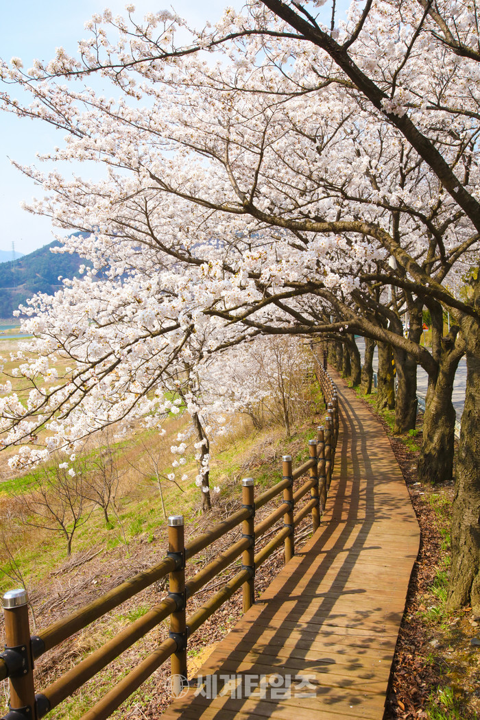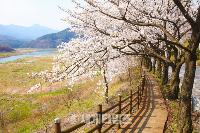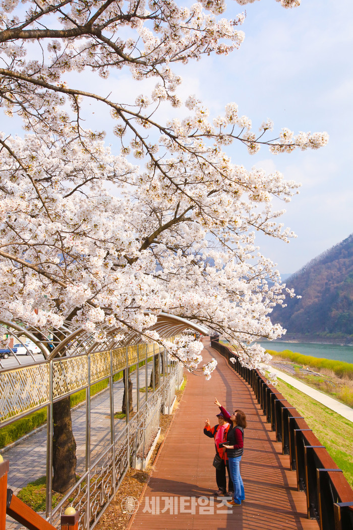 단양의 벚꽃 명소 가운데 빼 놓을 수 없는 게 단성면 강변산책로다.