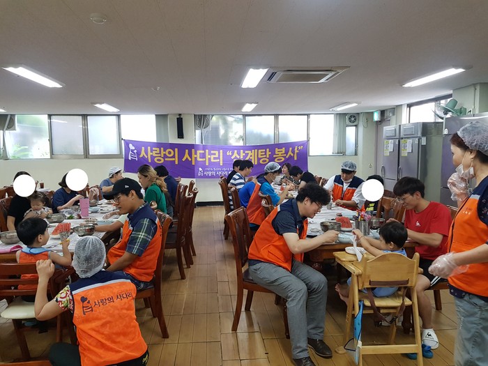 [대전=세계타임즈 이장성 기자] 대전시 소외계층을 위해서 다양한 봉사활동을 실천하고 있는 대전시 SNS 8천명 봉사단체 사단법인 사랑의 사다리 밴드(리더 이정제)는 14일, 동구 소제동에 위치한 자혜원(원장 양승연)에서 삼계탕 봉사로 우리 사회의 따뜻한 사랑을 전달하였다.