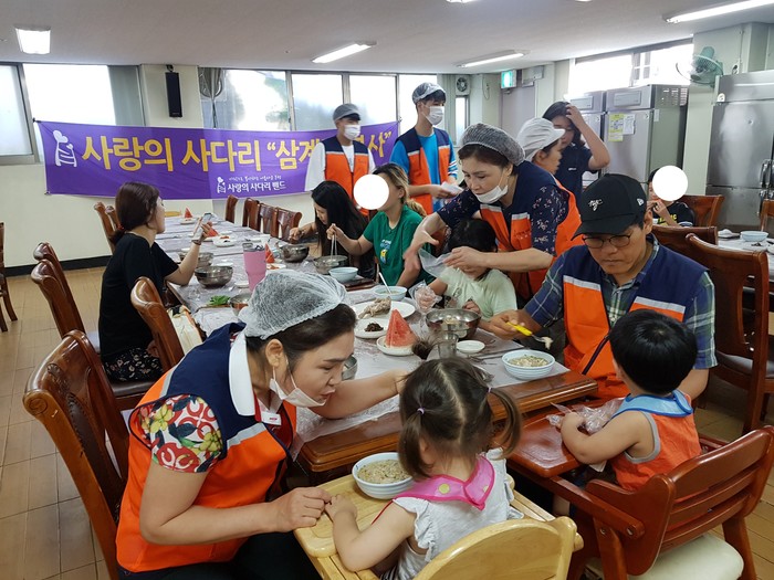 유희자 나눔봉사단장은 “가시오가피, 엄나무, 황기, 인삼, 밤, 대추로 만든 보양식 삼계탕을 맛있게 먹고 아이들이 무더운 여름을 잘 이겨내길 바란다.”고 말했다.