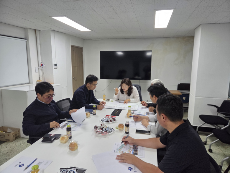 | ▲ 구미경의원(가운데 흰색셔츠)이 설계용역업체에 방문하여 관계자들과 회의를 하고 있다 |