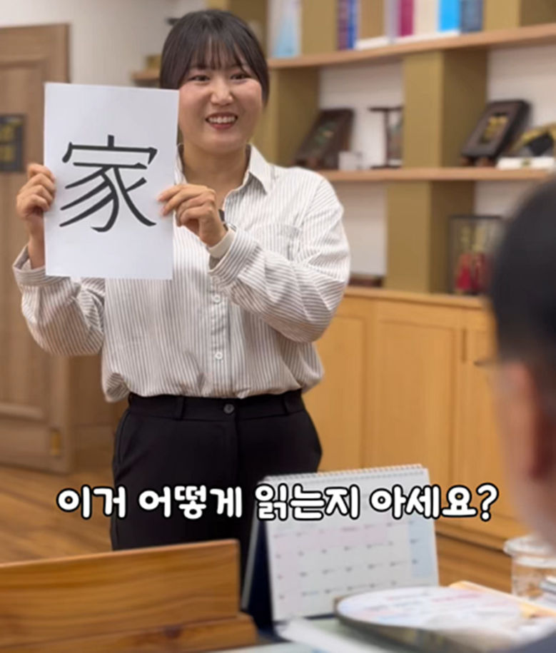 | ▲ 경주시청 공무원이 ‘집 가(家)’ 글자를 들어 보이며 “이거 어떻게 읽는지 아세요?”라고 묻는 장면. 추석 연휴를 앞두고 퇴근을 간절히 바라는 직장인의 마음을 유쾌하게 표현한 릴스 영상 캡쳐 사진 |