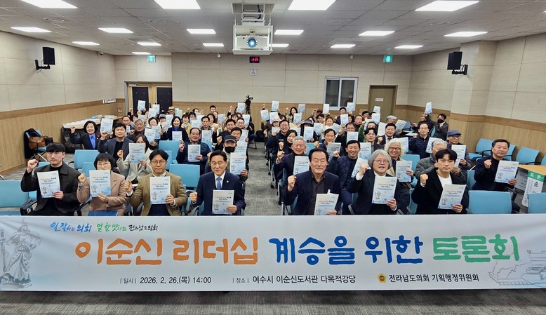 [전남 세계타임즈=우덕현 기자] 전라남도의회 강문성 의원(더불어민주당, 기획행정위원장, 여수3)은 2월 26일 여수 이순신도서관에서 「이순신 리더십의 현대적 가치와 지자체 차원의 계승 전략」을 주제로 토론회를 열고, 여수를 중심으로 한 '이순신 리더십 센터' 건립 논의를 공론화했다.