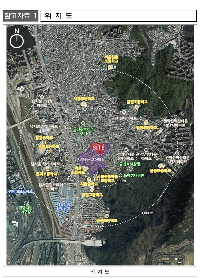 금천구 시흥5동 919-60번지 일대 모아주택은 총 7개동의 공동주택과 부대복리시설로 조성된다.