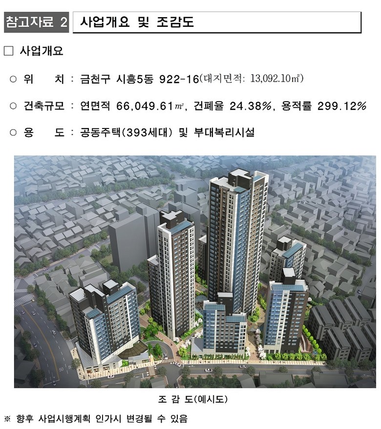 서울시는 2월 26일 제1차 소규모주택정비 통합심의 위원회에서 ‘금천구 시흥5동 922-16 일대 모아타운 관리계획 변경 및 919-60 일대 모아주택 사업시행계획’을 통과시켰다고 밝혔다.