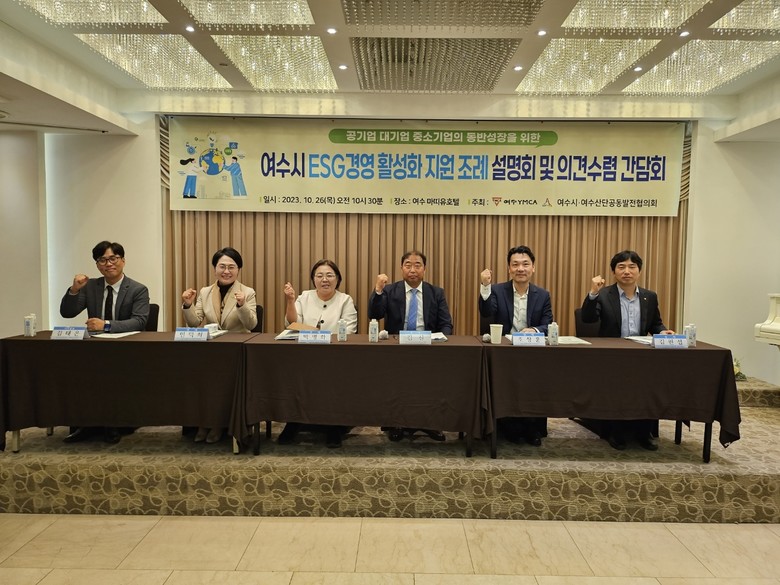 여수YMCA, 여수시여수산단공장발전협의회, 여수시의회 민덕희 의원은 ‘공기업 대기업 중소기업의 동반성장을 위한 여수시 ESG 경영 활성화 지원조례 설명회 및 의견수렴’ 간담회를 26일 마띠유호텔에서 공동으로 개최했다.