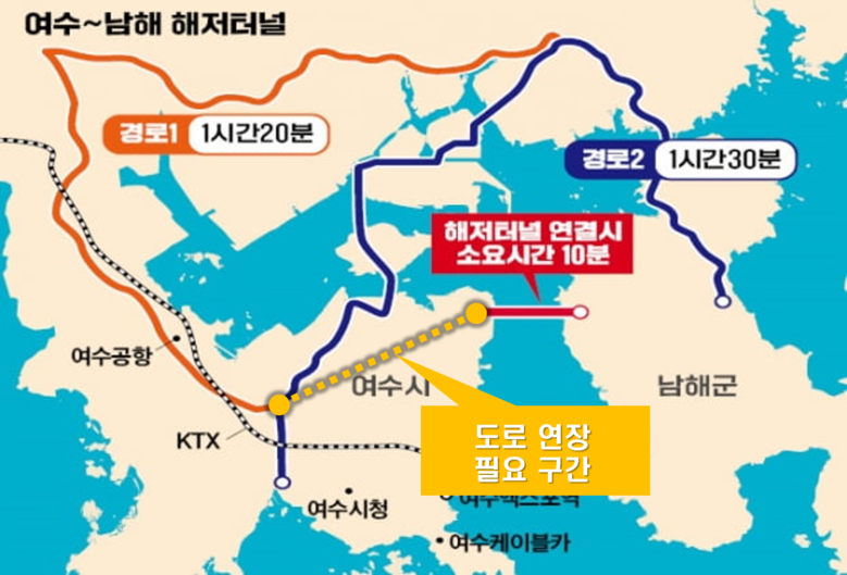 그러나 2개소의 진출입로가 건설되는 남해 지역과 달리 여수에는 1개의 진출입로만 있는 Y자 형태의 터널이 계획됨에 따라 여수 지역사회에서는 해저터널 건설계획이 남해지역에 편중되어 있다며 상대적 박탈감을 호소하고 있다.