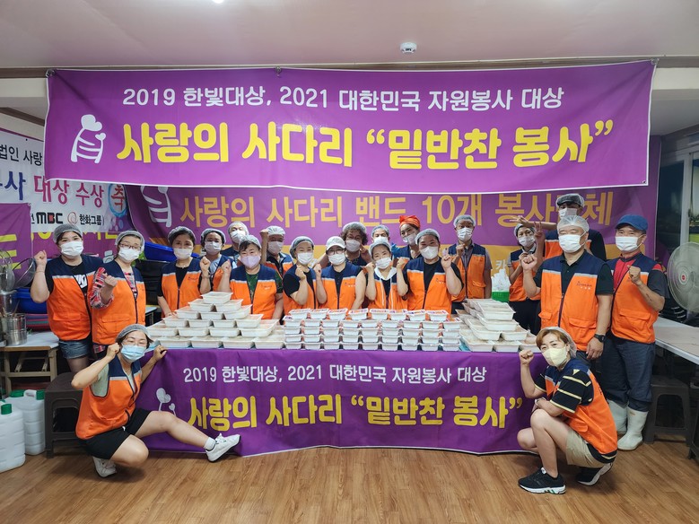 7년동안 지방자치단체의 보조금 지원 없이 꾸준한 봉사를 실천하고 있는 사랑의 사다리 밴드는 매월 300가정의 소외계층에게 밑반찬 봉사를 하고 있다.