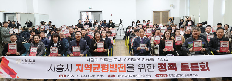 [시흥시 세계타임즈=송민수 기자] 경기 시흥시의회(의장 오인열)가 11월 19일 신현동 주민자치센터 1층 강당에서 ‘사람이 머무는 도시, 신현동의 미래를 그리다’를 주제로 지역균형발전 정책토론회를 개최했다.