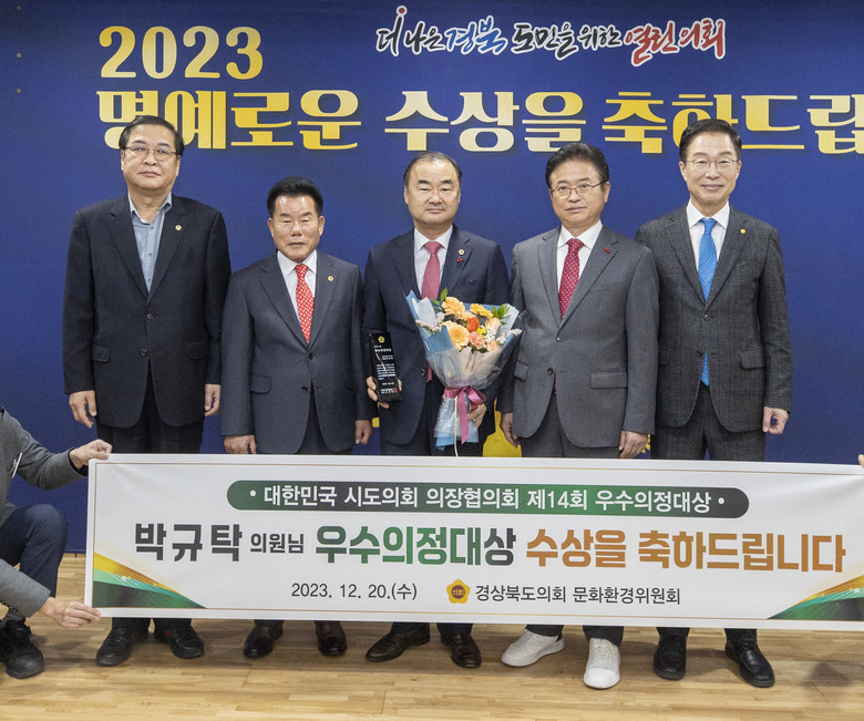 [경북 세계타임즈=한윤석 기자] 경상북도의회 박규탁 의원(국민의힘, 비례)은 12월 20일 대한민국 시도의회 의장협의회에서 수여하는 제14회 우수의정대상을 수상했다.