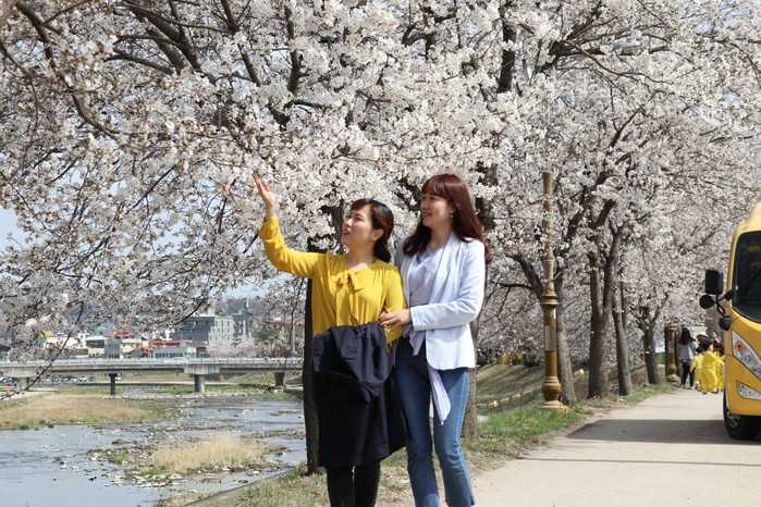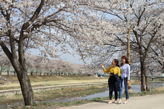 영동군민의 문화·휴식공간인 영동천변이 화사한 벚꽃들로 가득 덮였다.