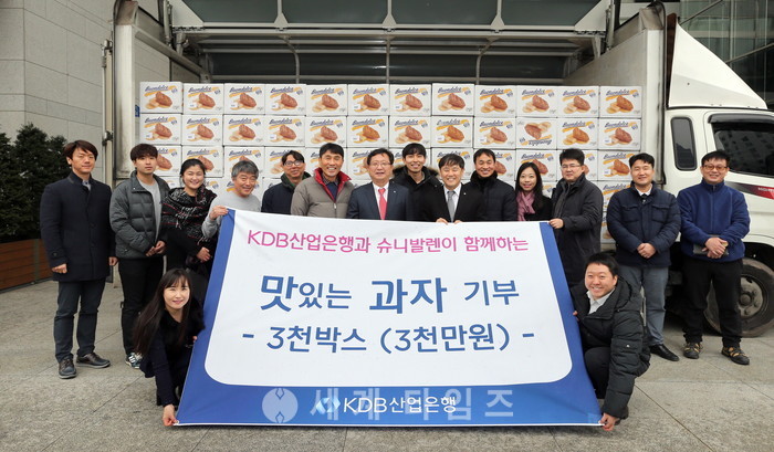 이번 행사는 산업은행 고객인 슈니발렌(망치로 깨어 먹는 과자) 제조사 KJCNC로부터 3천박스(3천만원 상당)의 과자를 기증받아 추진되었다.