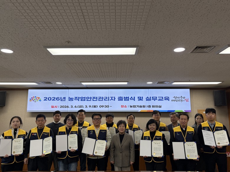 도 농업기술원은 6일 기술원 회의실에서 천안, 아산, 논산, 금산, 부여, 태안 6개 시군에서 선발된 안전관리자 12명과 관계자들이 참석한 가운데 ‘2026년 농작업 안전관리자 출범식’을 개최했다.